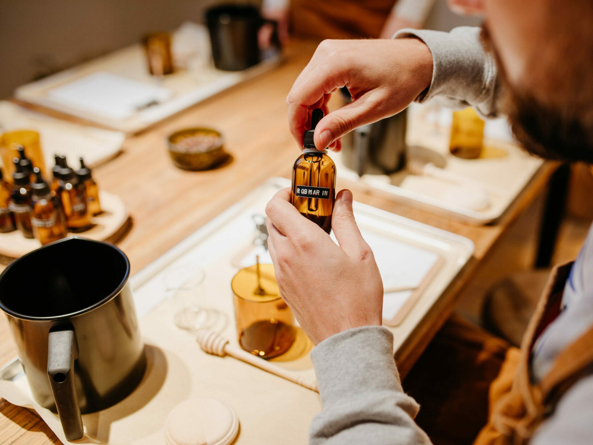 ... is for beginners. During the one and a half hour course you will be guided step by step through the candle making process. You'll learn all the basics and get tips on mixing essential oils and making your own candle. With our selection of essential oils you can mix your own unique scent. At the end of the course you will pour your own 140ml rapeseed wax candle and give it a name.